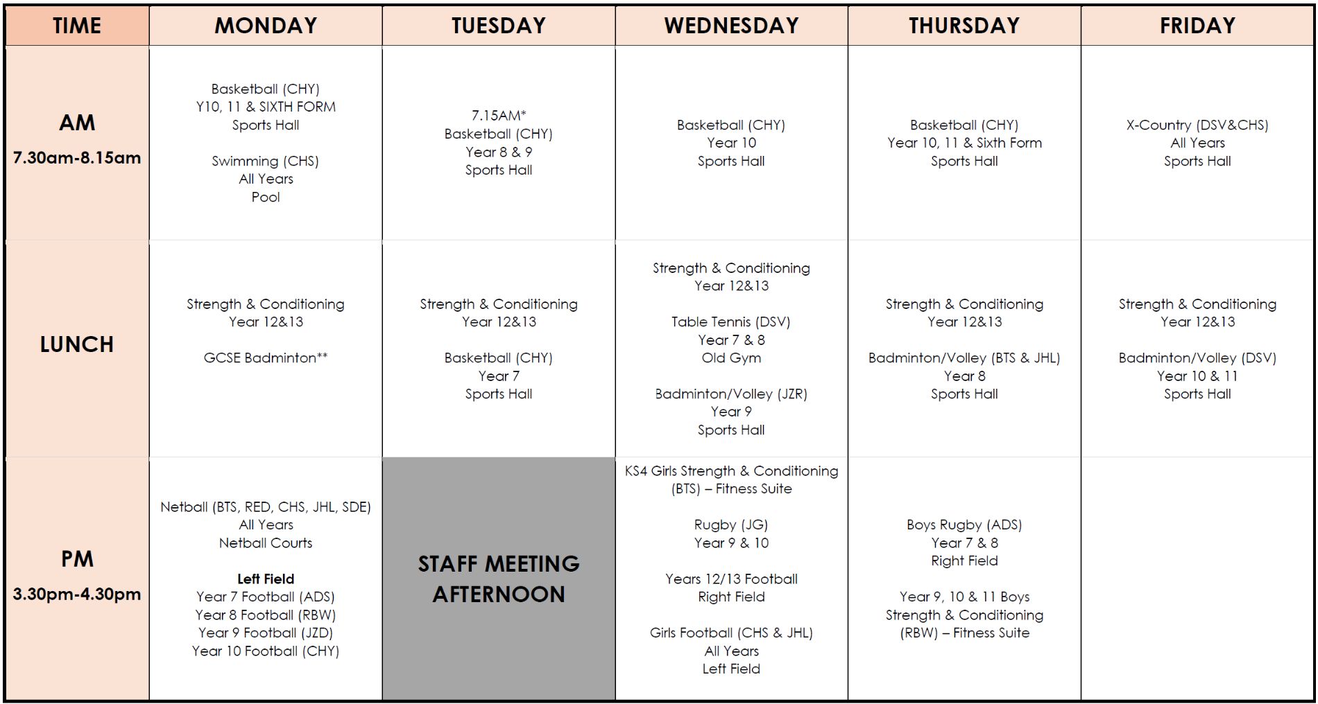 · Main curricular sports: Athletics, Cross Country, Netball, Basketball, Football, Rugby, Swimming and Tennis.